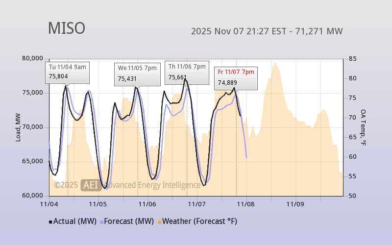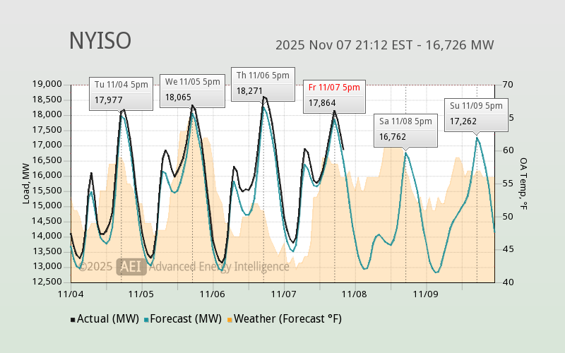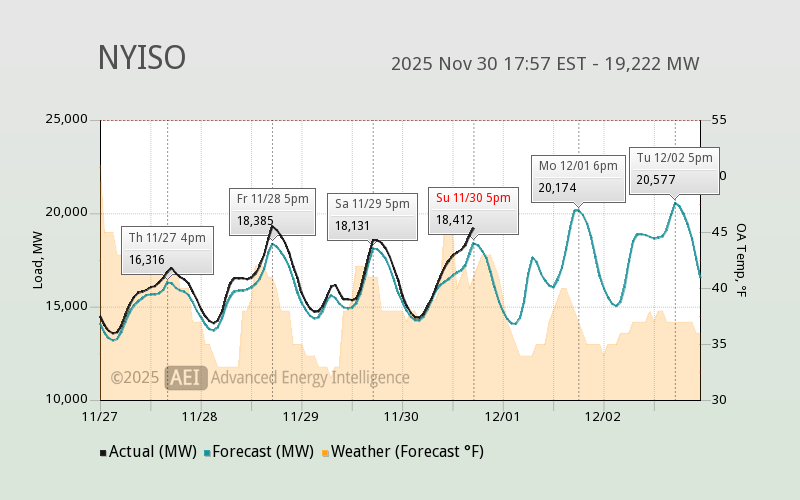 Sign Up for ISO email and SMS alerts to recieve timely notices of ISO demand that could have an impact on your facility's ICAP tag and FY18 demand charge pricing if your facility is on a Time Of Use ("TOU") electric utility meter. Consult your electric utility bill and any commodity agreements you may have for details. AEI now provides coverage for 5 of the 7 major grid operators in the U.S. and will soon be adding ERCOT and SWPP.