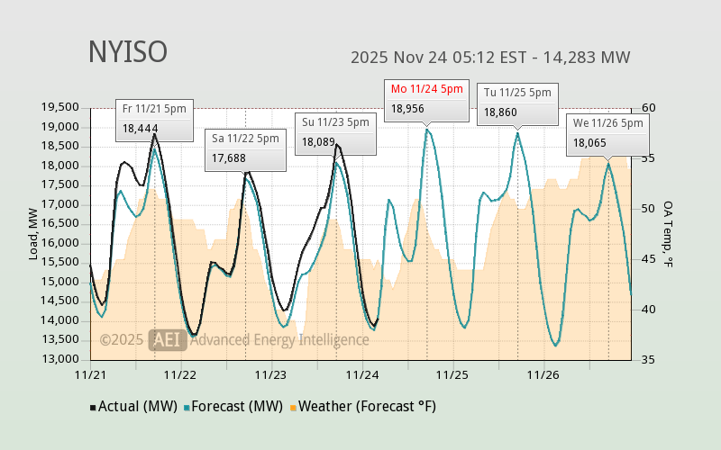 Sign Up for ISO email and SMS alerts to recieve timely notices of ISO demand that could have an impact on your facility's ICAP tag and FY18 demand charge pricing if your facility is on a Time Of Use ("TOU") electric utility meter. Consult your electric utility bill and any commodity agreements you may have for details. AEI now provides coverage for 5 of the 7 major grid operators in the U.S. and will soon be adding ERCOT and SWPP.